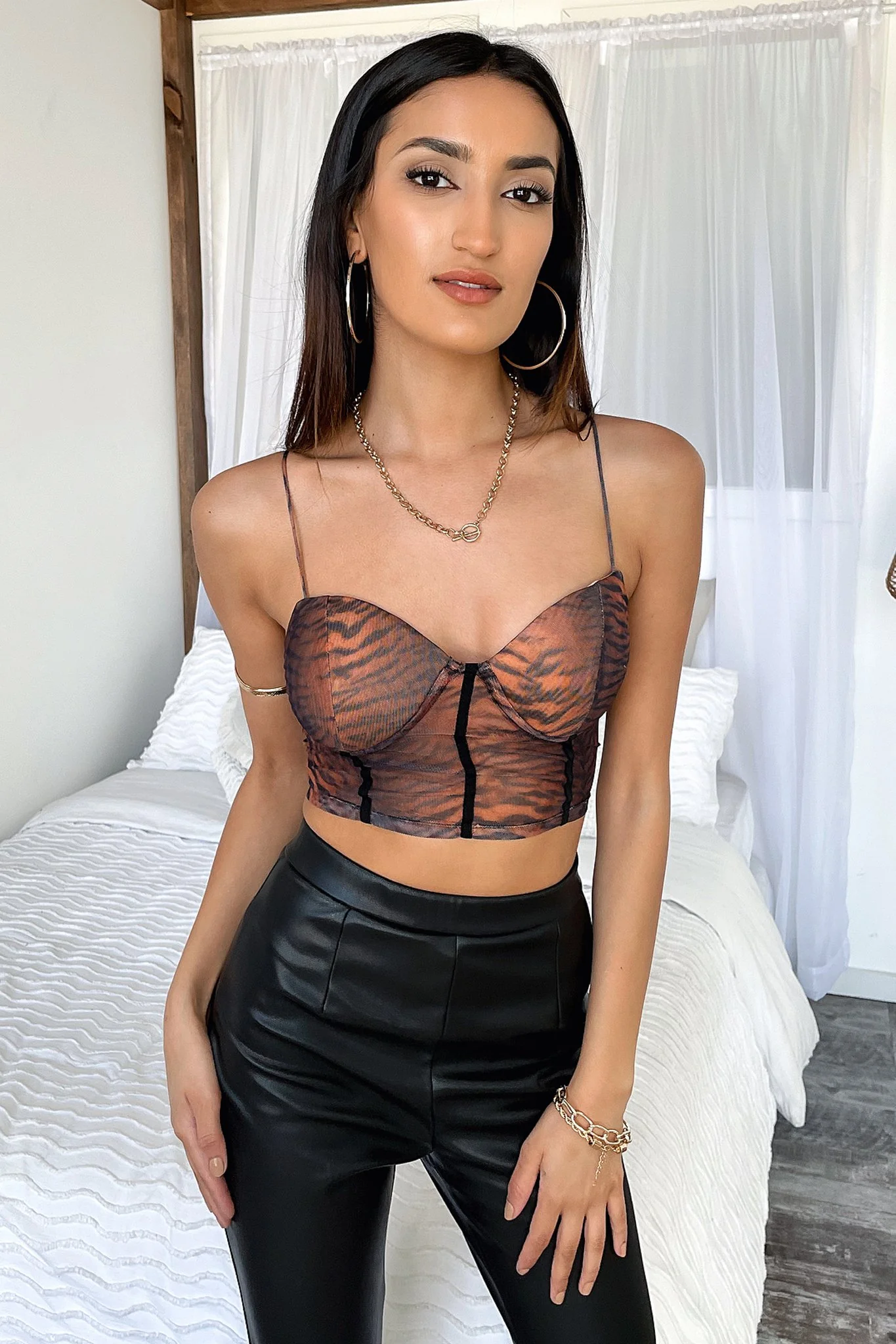 Lopez Bustier Crop - Brown Tiger Print