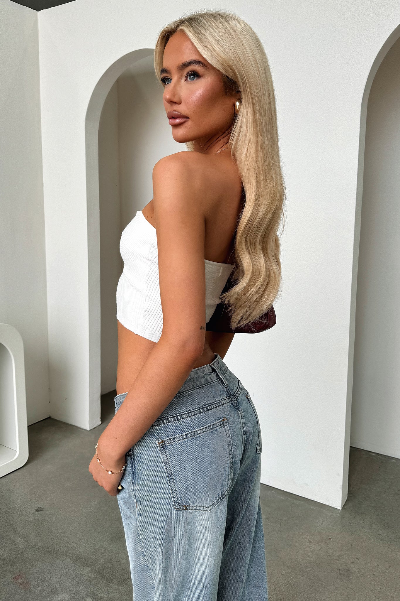 Kylie Strapless Twist Crop - White