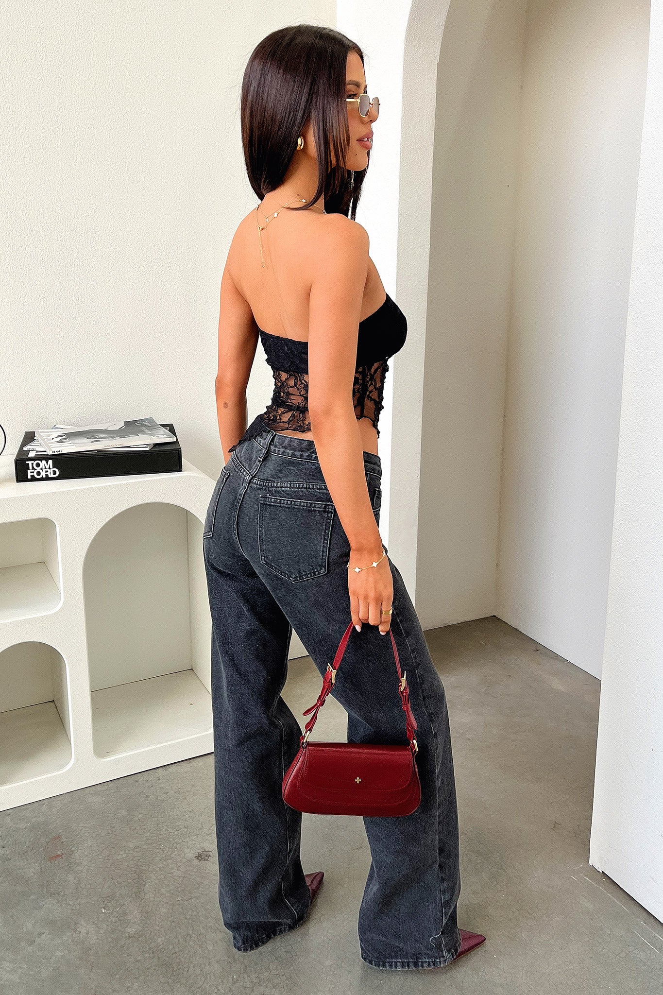 Maddison Lace Bandeau Top - Burgundy